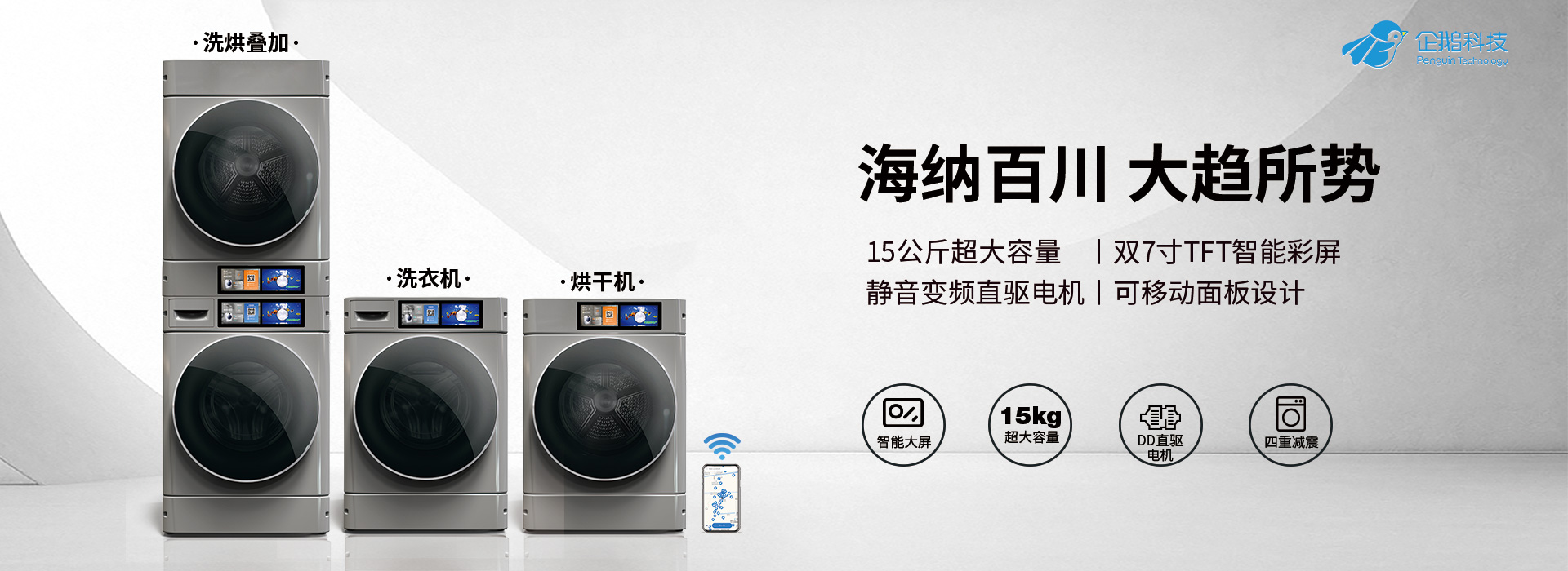 3、45分鐘急速洗烘、銀離子殺、純商用洗烘一體機、可設置收費/免費雙模式。